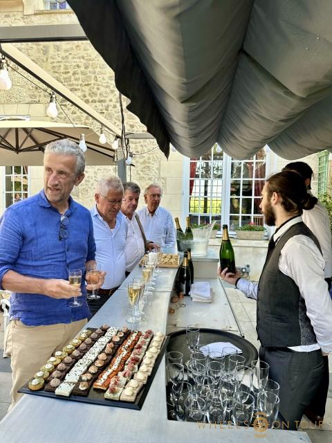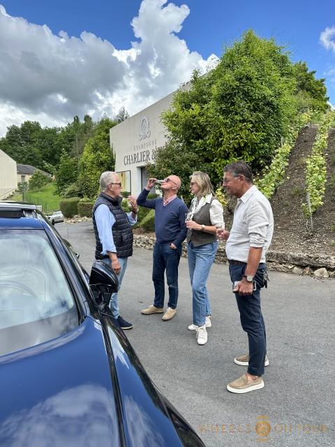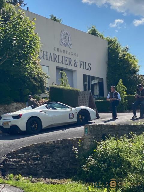 Op vrijdag rijden we een schitterende route door de “gouden driehoek” van de Champagne. Door een lappendeken van druivenvelden rijden we net buiten de stad langs het oude “Circuit van Reims”. Dit driehoekige parcours werd bekend om haar “12 Heures du Reims” en was in gebruik van 1926 tot 1972. We hebben contact gehad met de vrijwilligers die hier het circuit onderhouden en op hun uitnodiging stopten we voor een kopje koffie. Daarna konden we fantastische foto’s en video’s maken van de deelnemers die vol gas over het circuit voorbij reden. Onze volgende stop is bij het lokale champagnehuis “Charliers & Fils”. Hier worden we ontvangen door de dochter van de champagnefamilie Lauriane en vertelt ze ons meer over hun familiebedrijf. Er worden volop dozen champagne ingeslagen door de deelnemers. Na een heerlijke Franse plattelandslunch is er nog de mogelijkheid om het Museé Automobiles van Reims te bezoeken, in de avond is er geen programma en kan iedereen op eigen gelegenheid in de stad gaan dineren.